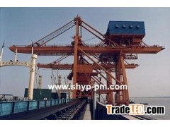 Bridge-type grab ship unloader is mainly composed of grab trolley,steel structure,supporting institution,the cantilever luffing mechanism,wire rope guide system,mobile cab,hopper and unloading equipment,dust removal system,electrical and control equipment parts.Trolley running on the main beam and cantilever rack,put grab into the cabin to grab materials,and then material be discharged into hopper,by truck,portable belt conveyor,discharged to the dock.Grabs support and open/close mechanism,trolley driving mechanism be operated by two sets of differential gear speed reducer installed in the equipment room.It’s compact structure,small volume,high efficiency.